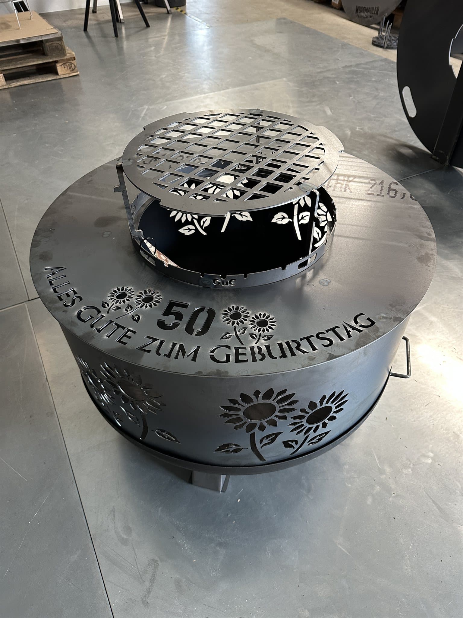 Manche Anlässe verdienen etwas ganz Besonderes – und genau dafür gibt es unsere Sonderanfertigungen. Egal ob Feuertonne, Grillplatten oder Zubehör: wir bringen deine Ideen in Stahlform. Logos, Schriftzüge, Muster oder komplett individuelle Formen – alles ist möglich. So wird dein Grill oder Ofen nicht nur zum praktischen Begleiter, sondern auch zum persönlichen Statement. Perfekt als Geschenk, für Jubiläen, Vereins- und Firmenfeiern oder einfach, wenn du ein echtes Einzelstück haben möchtest.